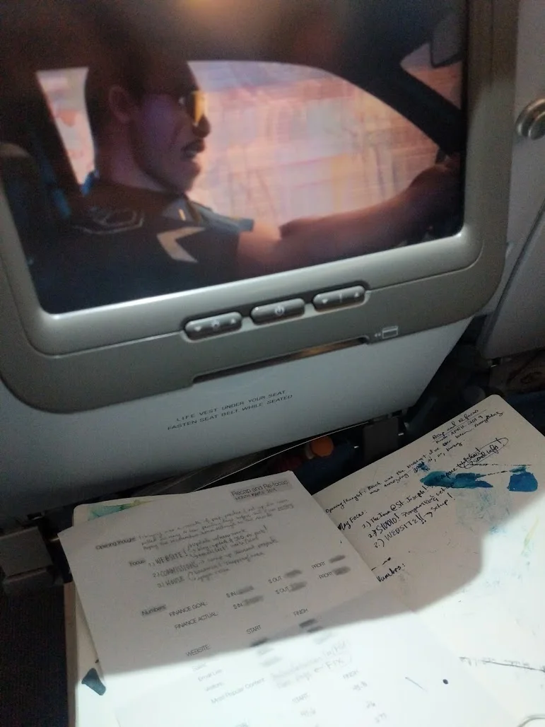 As is tradition (and necessary to stave off my flight anxiety…) I spent the first part of the flight working on my schedule, planning projects and preparing ideas. I began with the recap worksheet I try to do at the end of every month -downloadable here- and ended with planning works for my upcoming solo show at The Inn at Harbor Shores in St. Joseph Michigan. (With Spiderman into the Spiderverse playing in the background!)
