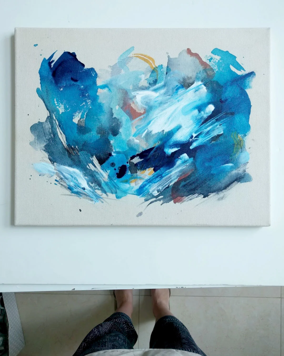 Once in the studio, I decided to make a few quick cloud-inspired studies, then set work to a new linen canvas with my liquid acrylics.